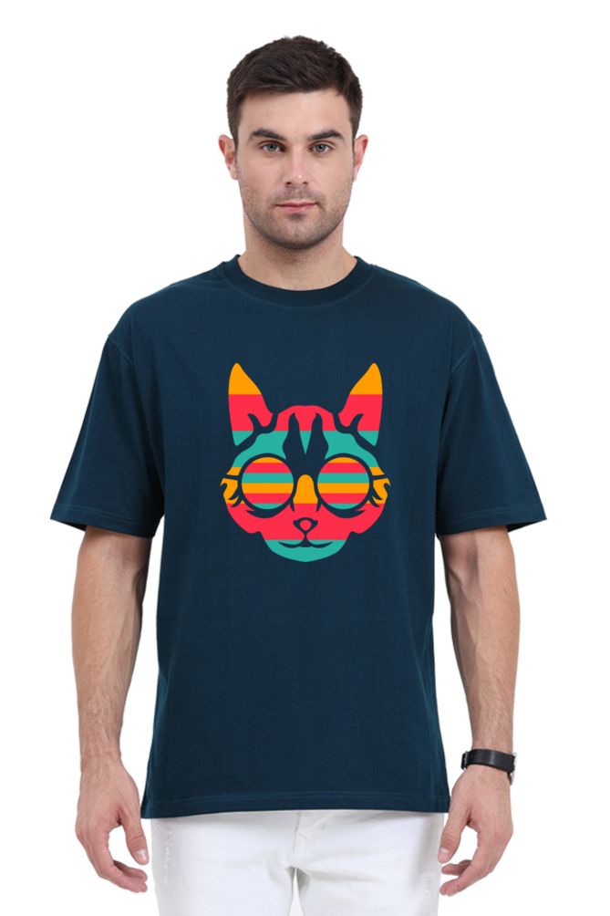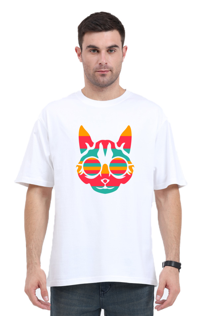 Unleash your inner feline with our Retro Cat Oversized T-Shirt designed for men who love quirky and bold fashion. This trendy t-shirt features a vivid graphic print of a cat face with colorful sunglasses, giving off retro and artistic vibes. Made from premium quality cotton fabric, it offers unmatched comfort, breathability, and durability. The oversized fit adds to the casual, laid-back look, making it perfect for outings, parties, or everyday casual wear. Available in multiple sizes and colors, this statement t-shirt will easily become a go-to in your wardrobe.